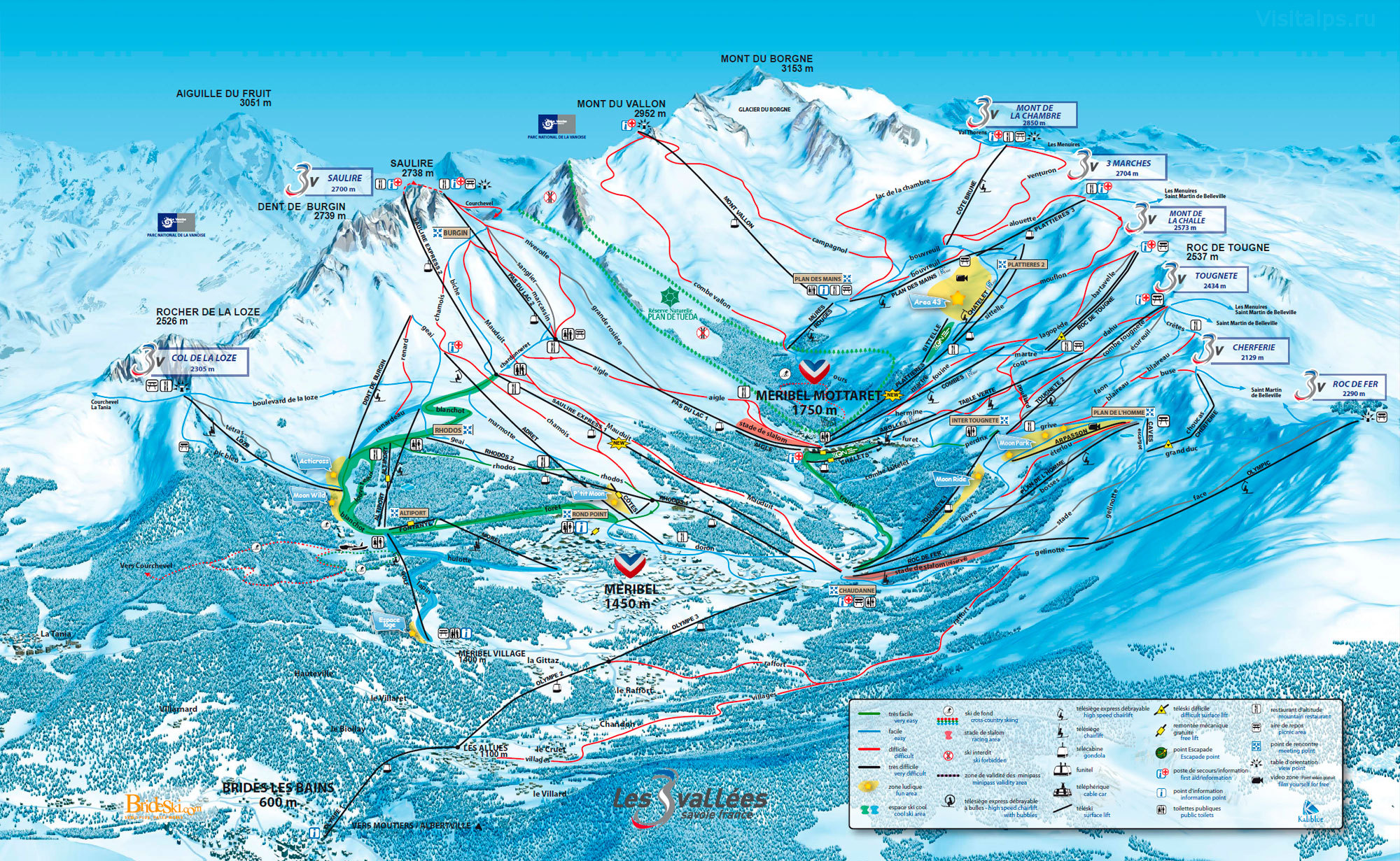 Висота: 1100 – 1800 м150 км трас600 км в Три Долини60 підйомників175 в Три долини