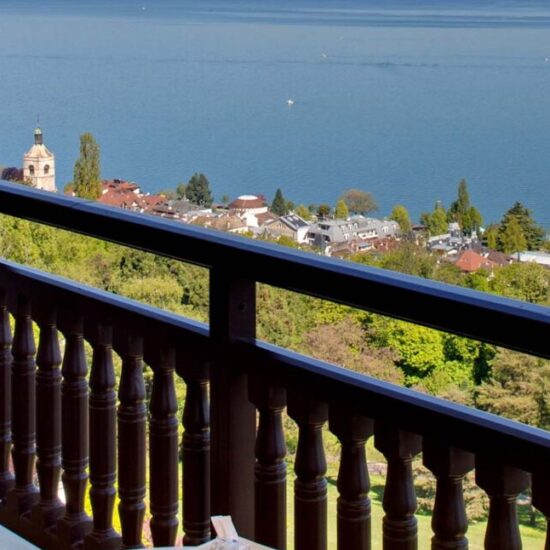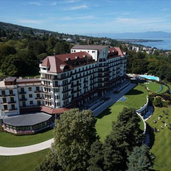 Готель розташований на території парку площею 47 гектарів, всього в 10 хвилинах їзди на автомобілі від центру міста Евіан. З готелю відкривається вид на Женевське озеро. До послуг гостей спа-центр, оздоровчий центр, критий і відкритий басейни.