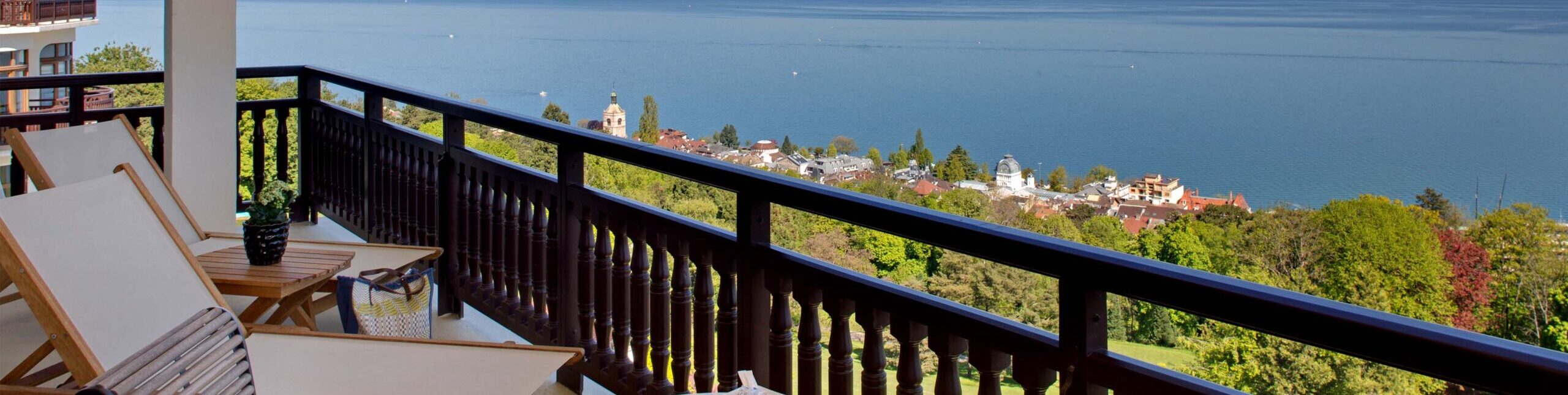 Готель розташований на території парку площею 47 гектарів, всього в 10 хвилинах їзди на автомобілі від центру міста Евіан. З готелю відкривається вид на Женевське озеро. До послуг гостей спа-центр, оздоровчий центр, критий і відкритий басейни.